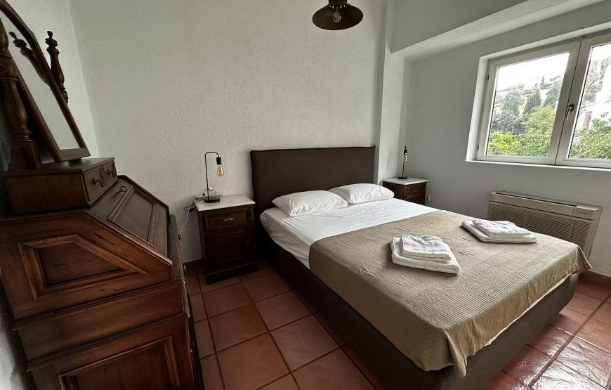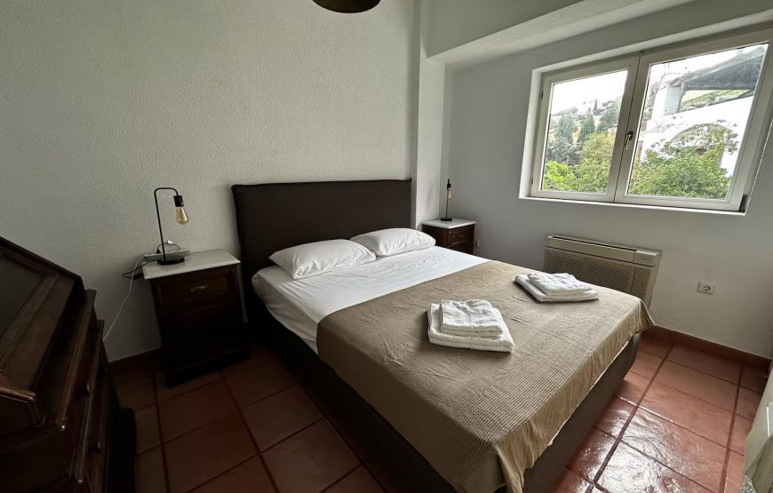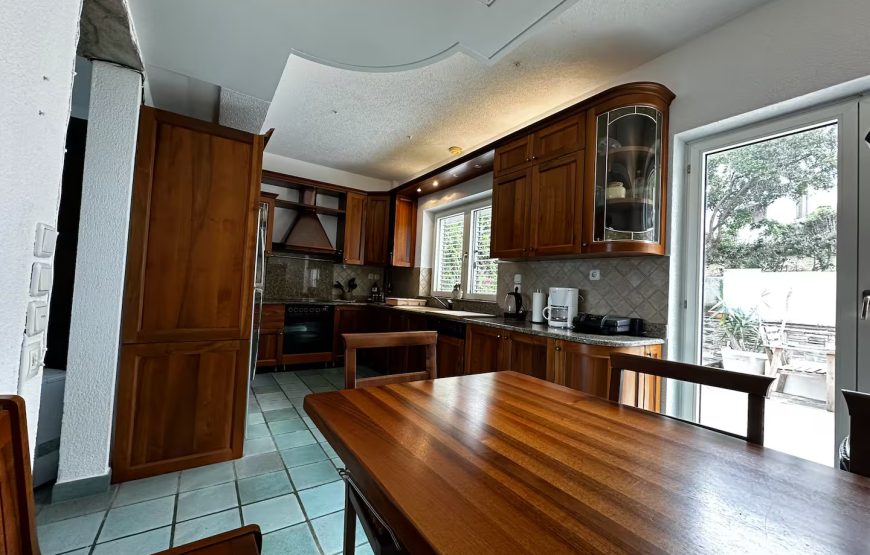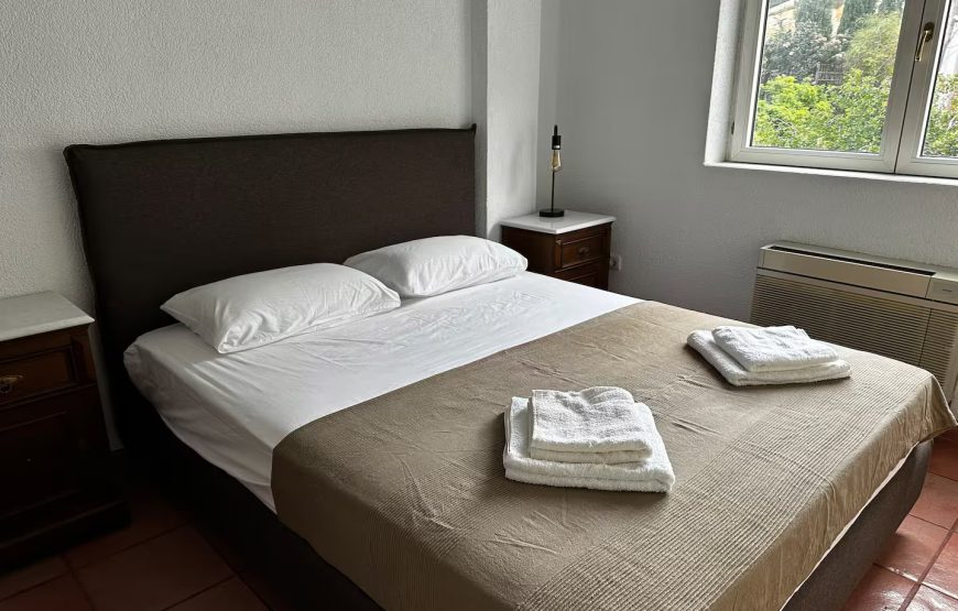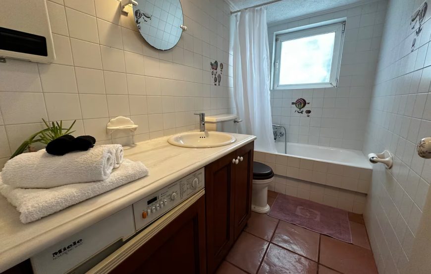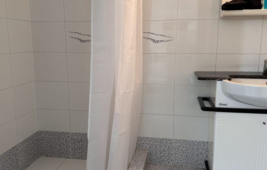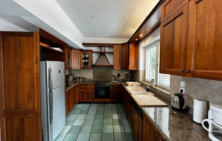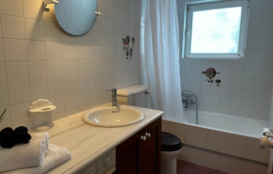 In the independent guest house, there is a double bed and a single bed. There is also a kitchen and a bathroom.