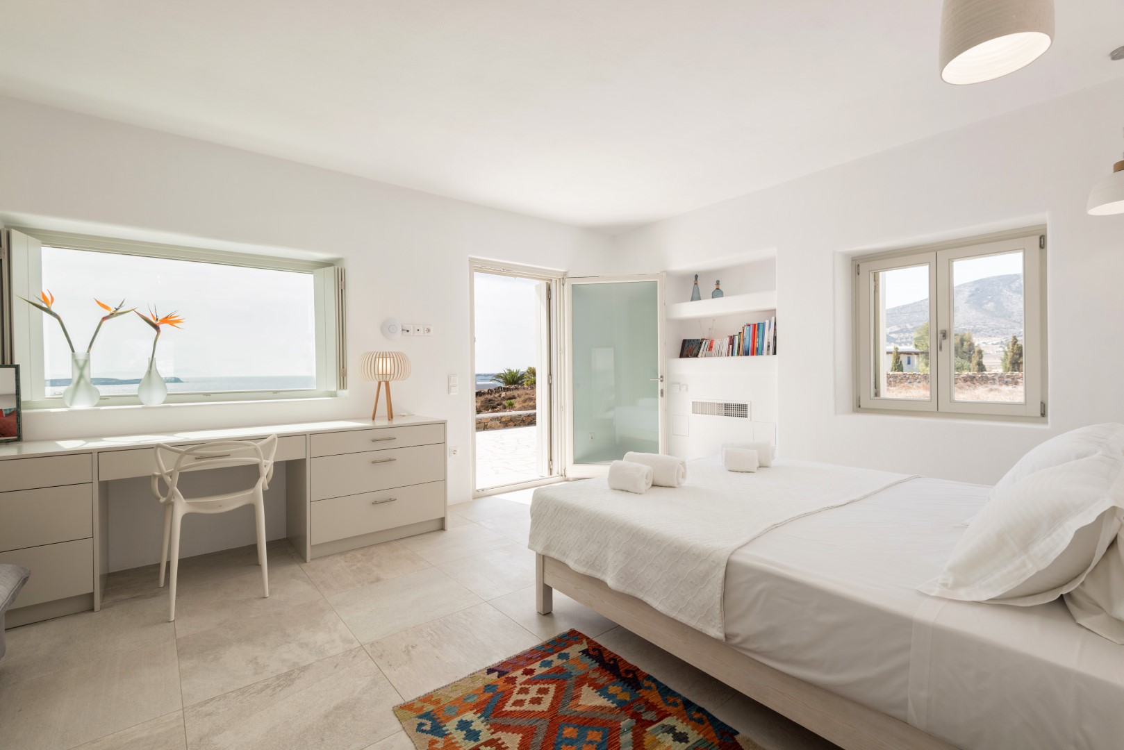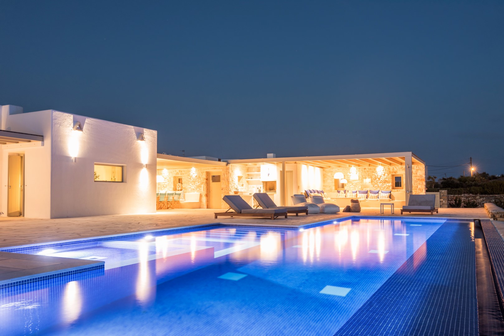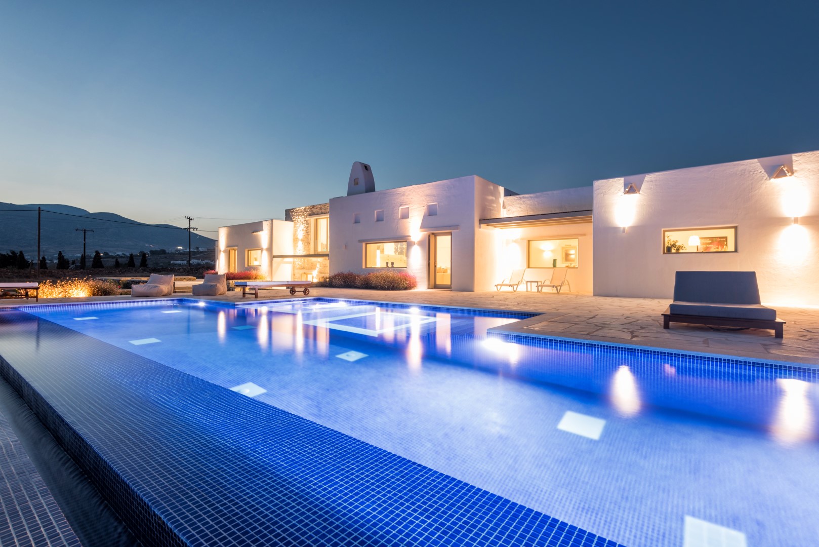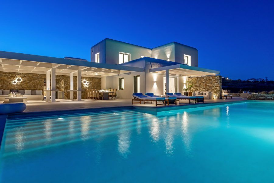 Villa Allegra is an exceptional 4-bedroom luxury property situated in the prestigious Golden Beach area, offering breathtaking panoramic views of the Aegean Sea and neighboring Cycladic islands. Set on a magnificent 9,000 sq.m. plot with a beautifully landscaped Mediterranean garden, this villa combines contemporary elegance with traditional Cycladic architecture. Just a short walk from the majestic golden sandy beaches, guests can enjoy both privacy and convenience.