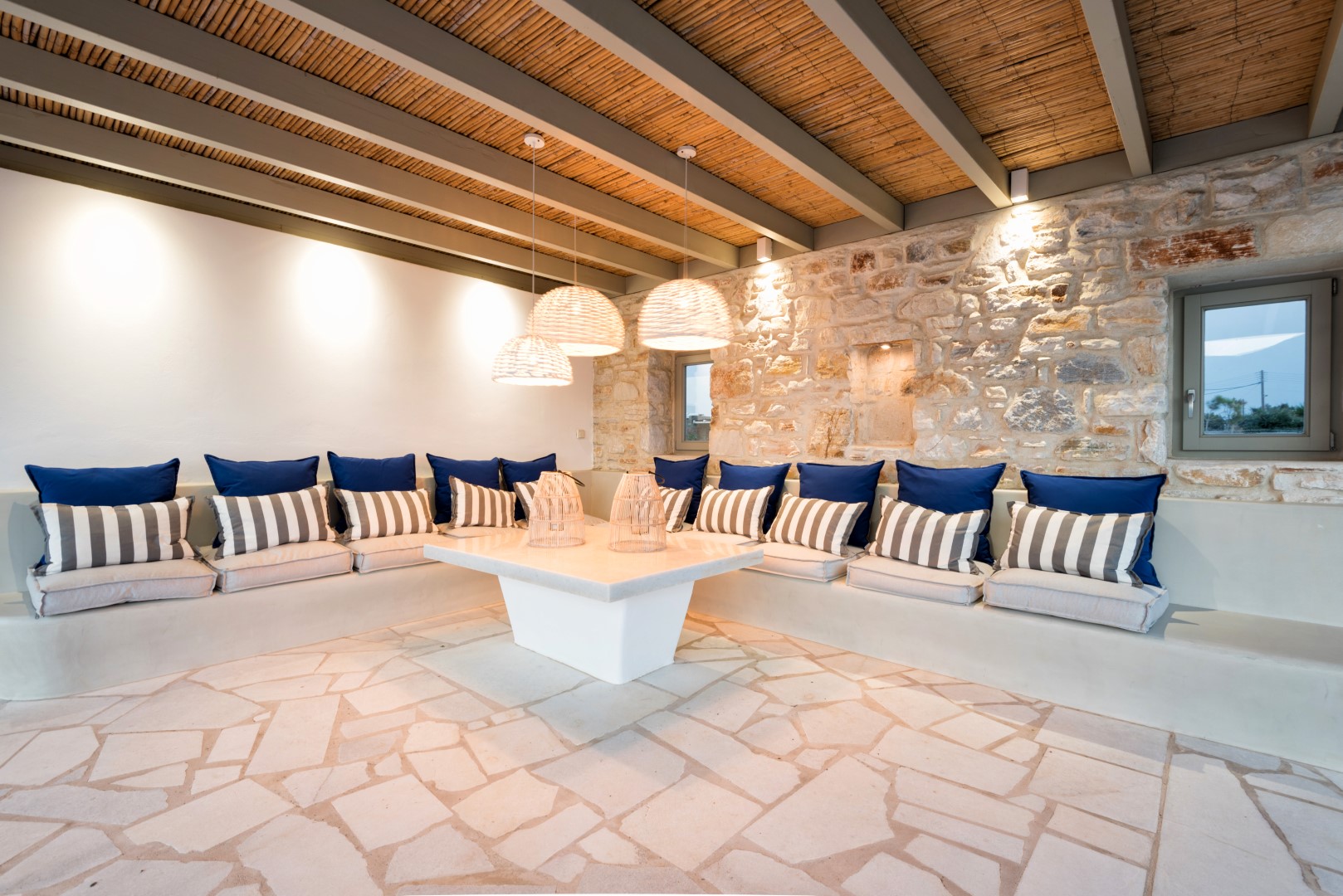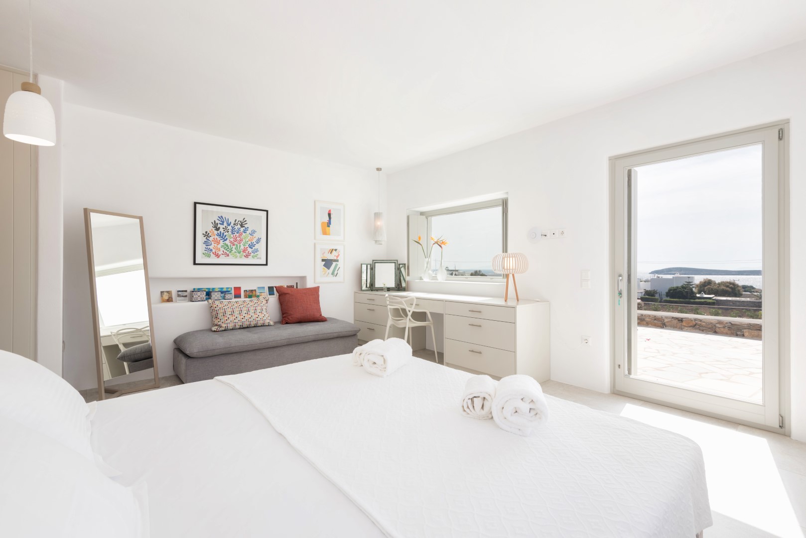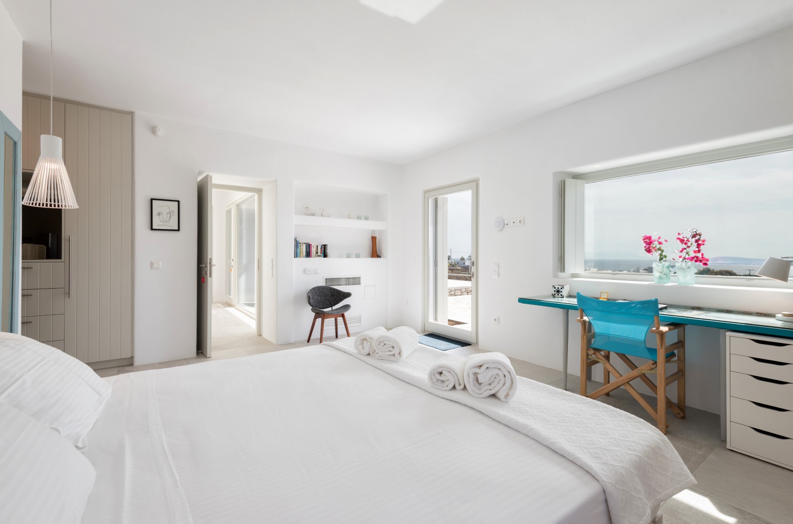 Villa Allegra is an exceptional 4-bedroom luxury property situated in the prestigious Golden Beach area, offering breathtaking panoramic views of the Aegean Sea and neighboring Cycladic islands. Set on a magnificent 9,000 sq.m. plot with a beautifully landscaped Mediterranean garden, this villa combines contemporary elegance with traditional Cycladic architecture. Just a short walk from the majestic golden sandy beaches, guests can enjoy both privacy and convenience.