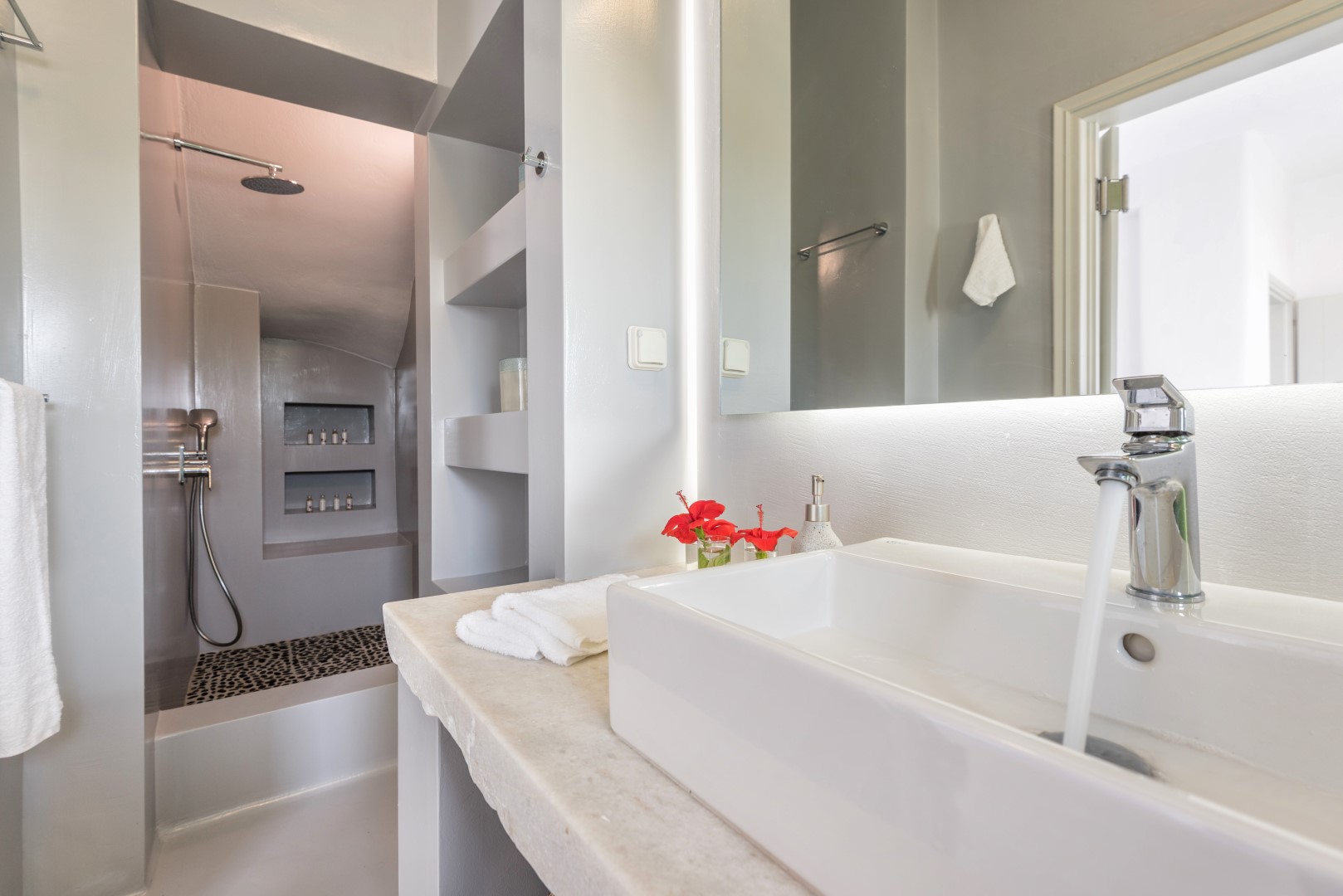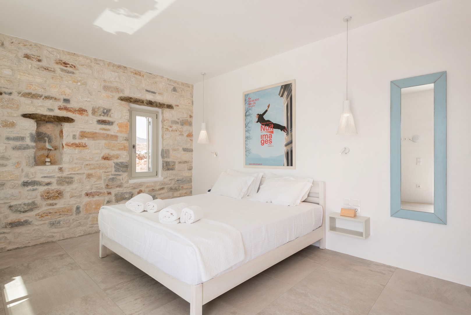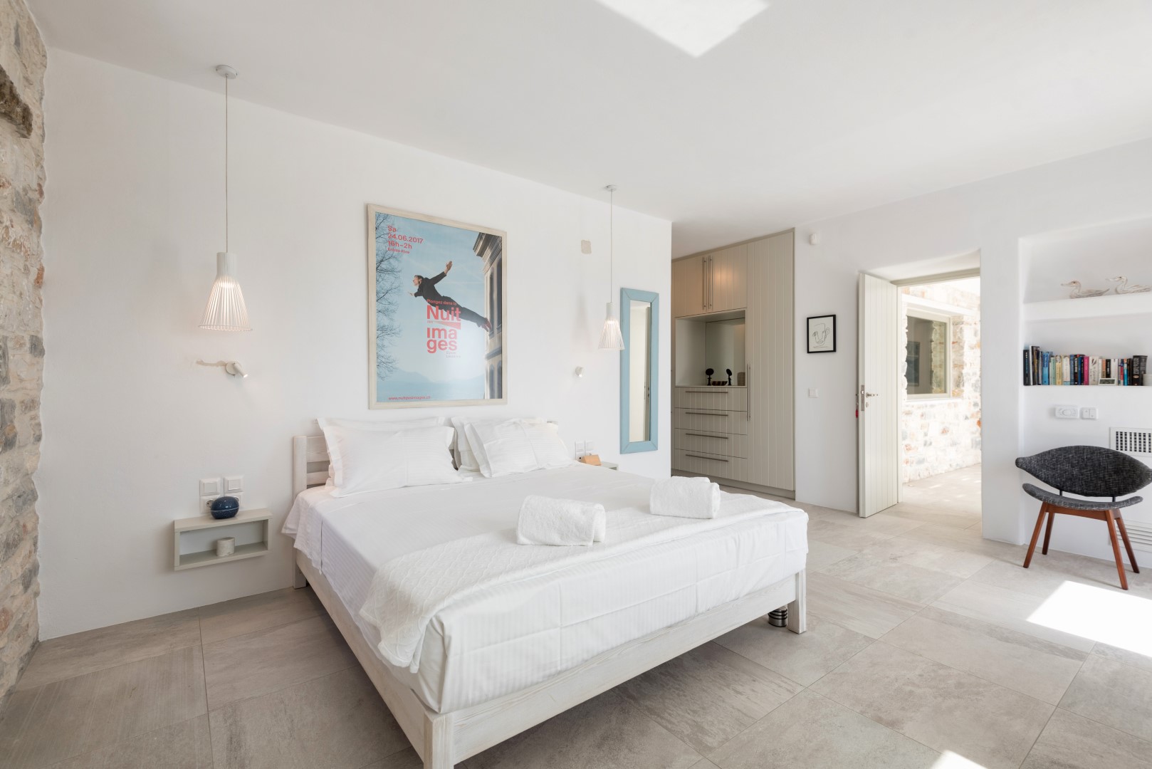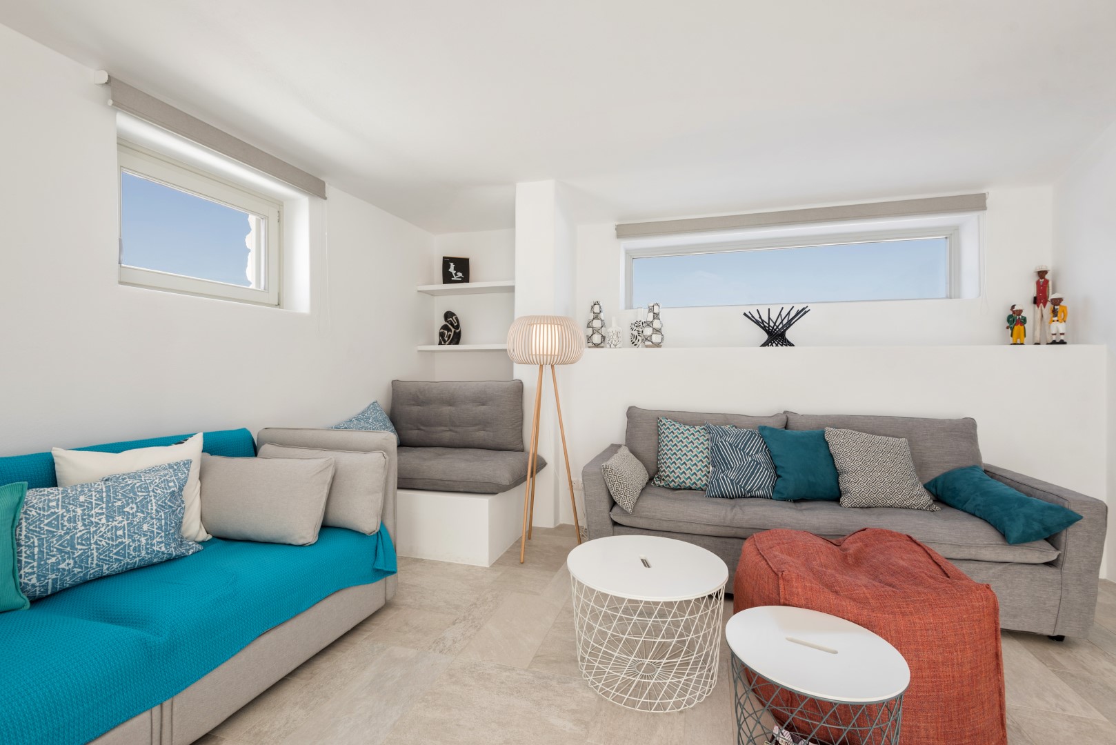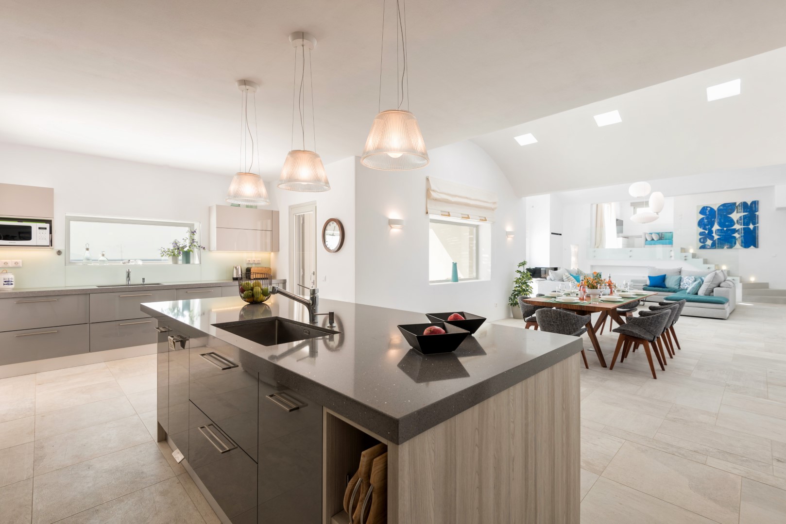 The villa comfortably accommodates 8 guests in four luxurious bedrooms, with an additional mezzanine space that can sleep 2 more visitors. Its spectacular infinity-edge swimming pool seemingly merges with the azure waters beyond, while multiple sun-drenched terraces provide perfect spaces for relaxation or entertaining. The high-domed ceilings with skylights bathe the interior in natural light, highlighting the elegant living spaces, beautiful dining area, and fully-equipped modern kitchen with island. Each bedroom features en-suite facilities, with three on the ground floor and a cheerful twin room on the lower level, all offering magnificent sea views and access to outdoor spaces. Complete with BBQ facilities, covered parking, and all modern conveniences, Villa Allegra represents the pinnacle of Cycladic island living just a short drive from picturesque villages and additional beaches.