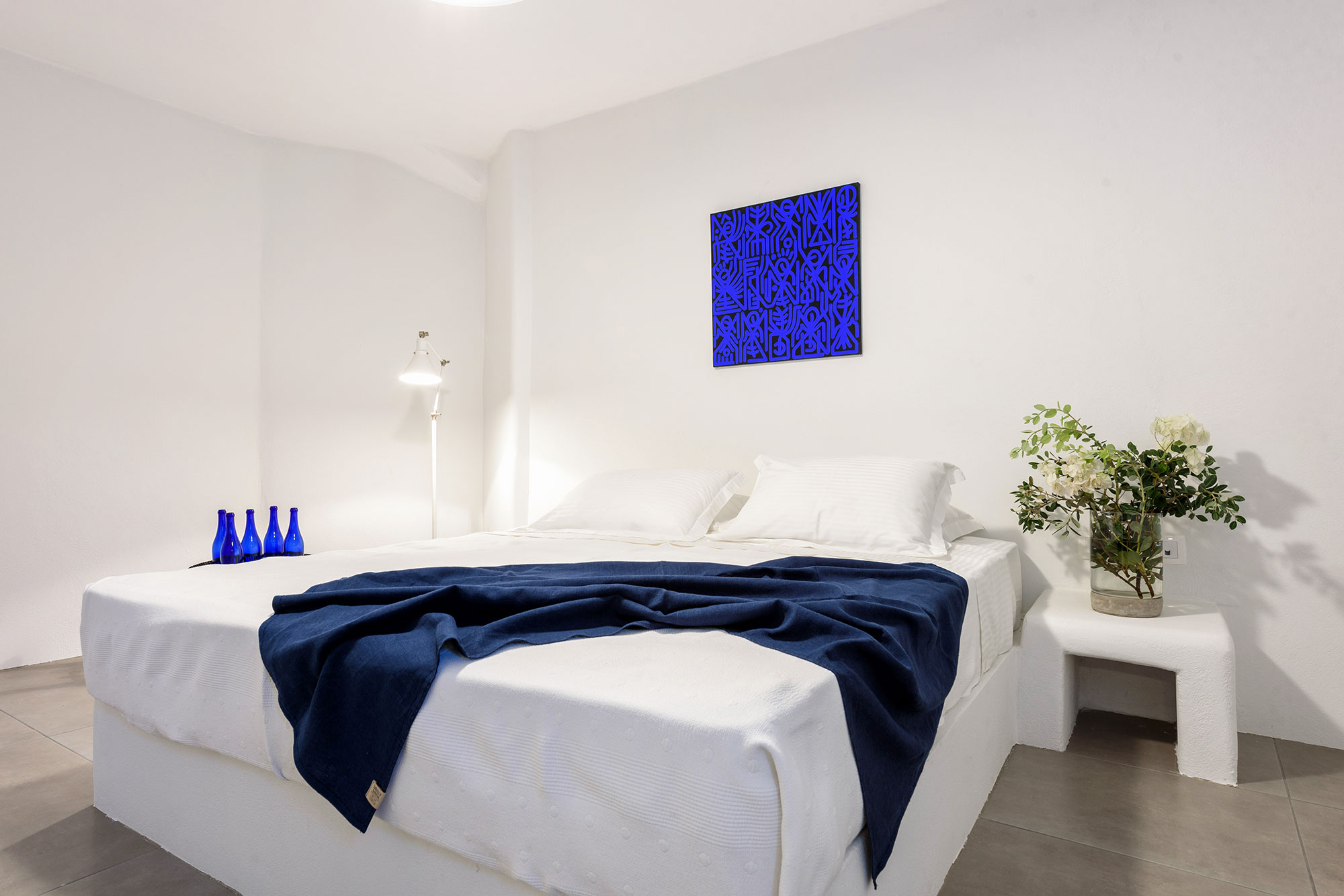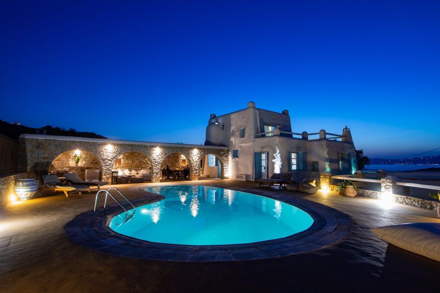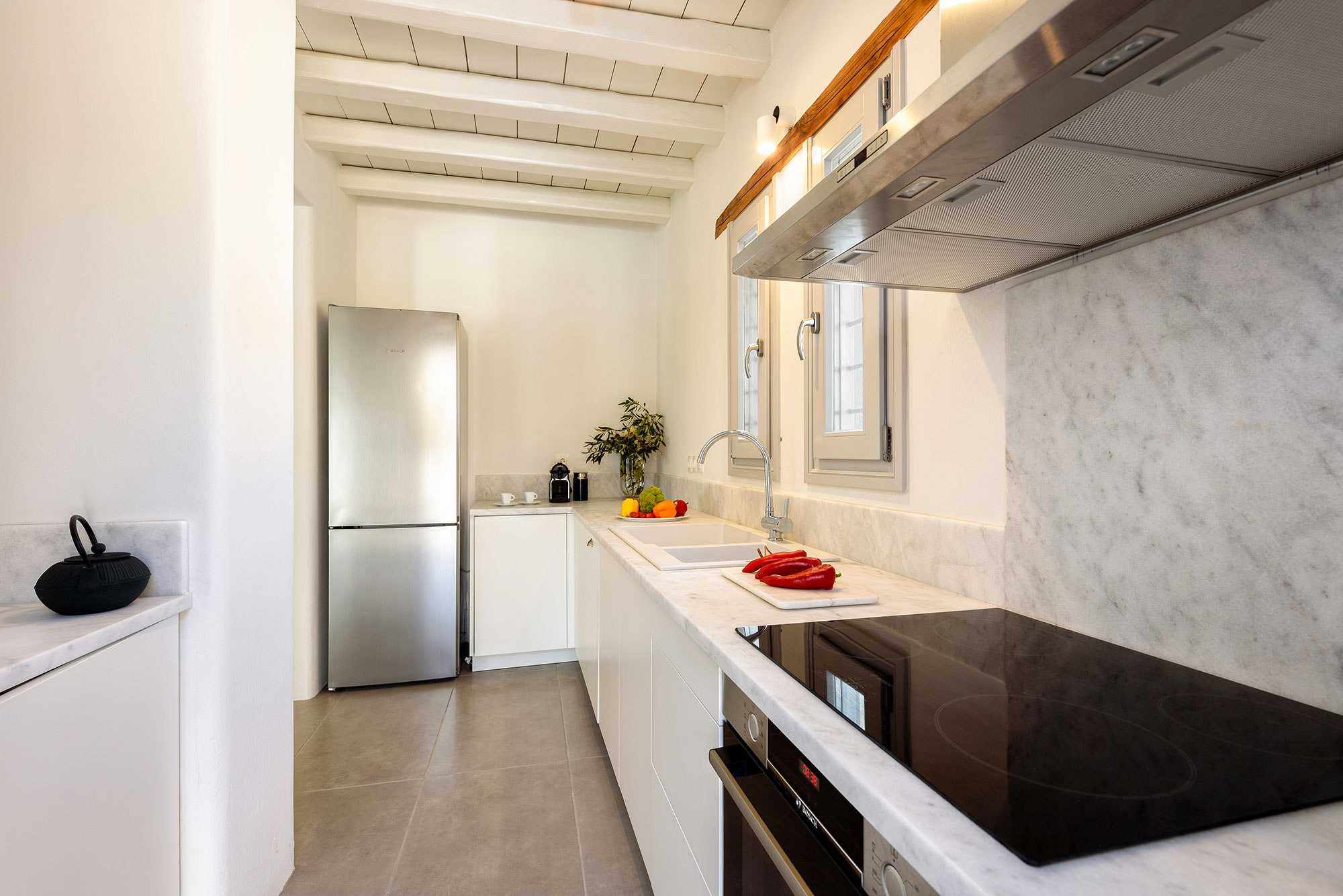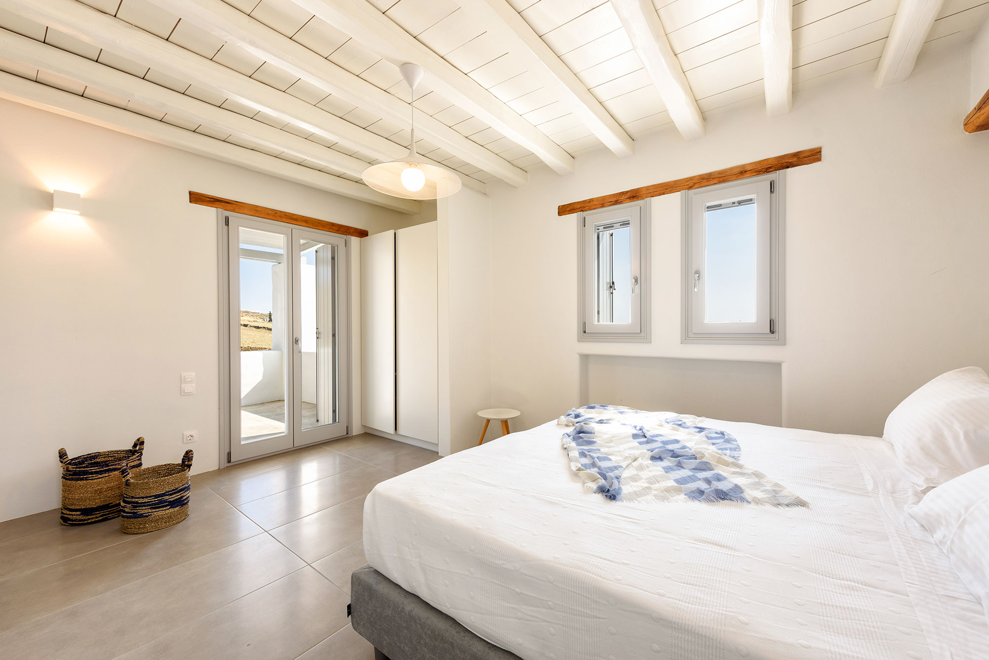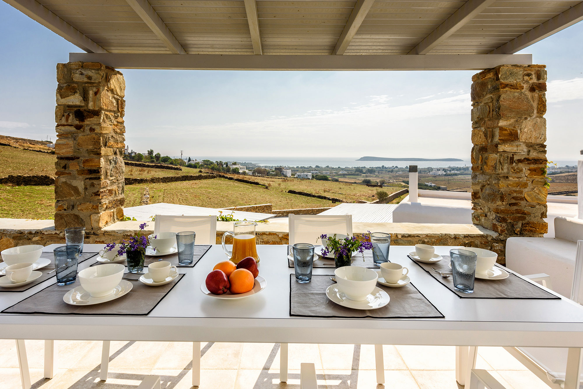 The outdoor space is thoughtfully designed with various shaded corners creating a serene landscape around the swimming pool. Complete with all modern amenities including Wi-Fi, espresso and filter coffee machines, dishwasher, BBQ area, and private parking, Villa Anemos provides everything needed for a memorable island getaway.
