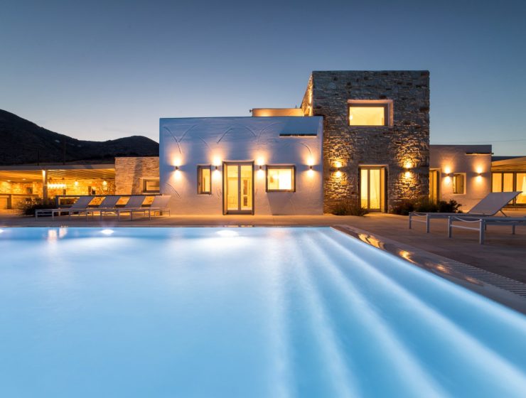 Villa Eleanor is perched at the edge of the Agios Lazaros Mykonos private 11-Villa Estate and enjoys an uninterrupted view of the islands of Delos and Rhenea over a majestic drop to the sea, offering the picture-perfect Mykonos sunset. Spread over the 38,000m2 estate each of the luxurious villas sports a pool, distinctly inspired decoration, satellite TV and Wi-Fi. Back-up generators and water purifiers, 24/7 CCTV monitored grounds, a private jetty and a helipad are available to guests, while chefs, butlers, extra cleaning and catered services can be arranged to never stop.
