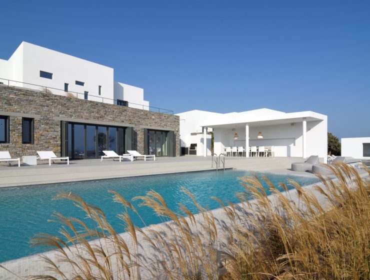 This 5-bedroom Villa is located above the famous Nammos and opposite Scorpios, just a 5 minute walk from the beach with anamazing panoramic view of the Aegean Sea and the Psarou Gulf. The villa is only 10 minutes away by car from Mykonos Town, but also offers a calm & relaxing environment by the blue mykonian sea that you are able to see both from the windows of the house and the terrace in full privacy. However, if you feel like staying in the Villa, you can spend the day in our beautiful terrace with the swimming pool and even have a barbecue using our facilities!