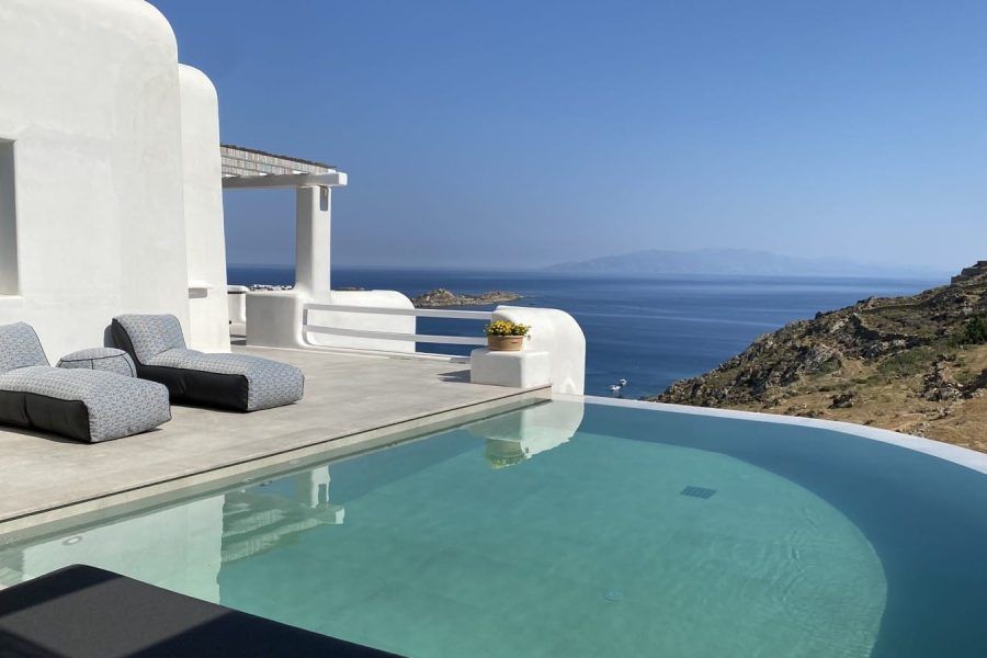 Discover Villa Lenora, an exquisite sanctuary where Cycladic elegance meets contemporary luxury, perched majestically in the coveted Tzane area of Golden Beach. This distinguished 235 sq.m retreat captures the essence of refined island living, offering discerning guests an exclusive haven where time seems to stand still against the infinite blue horizon.
