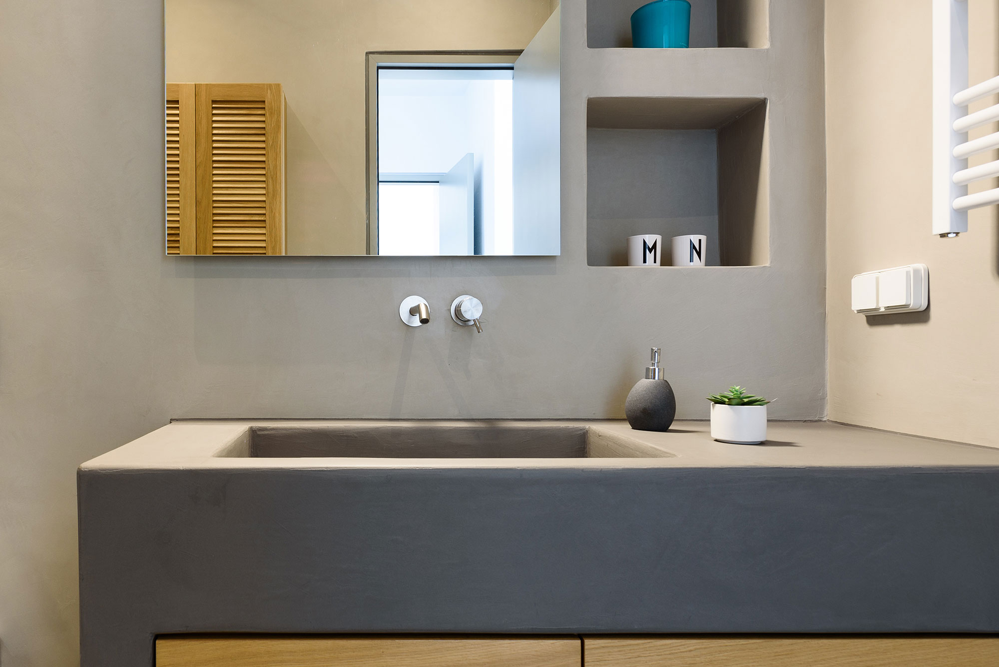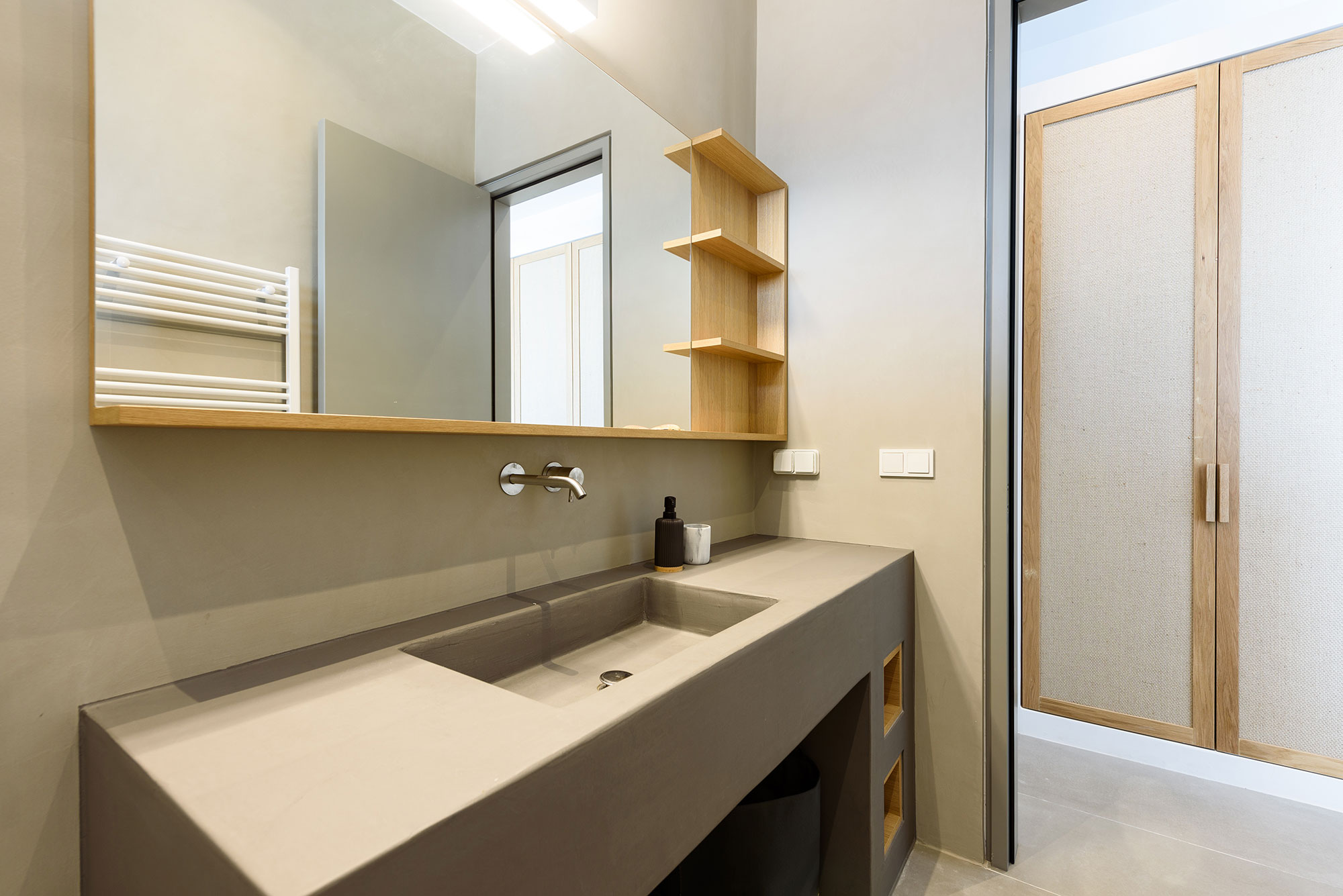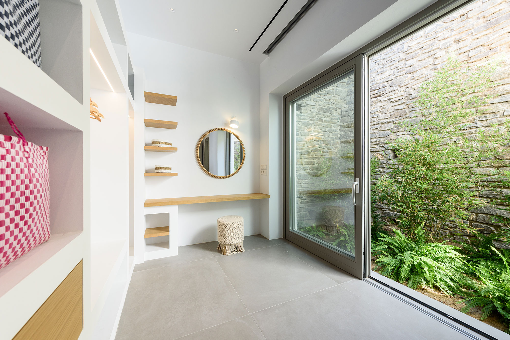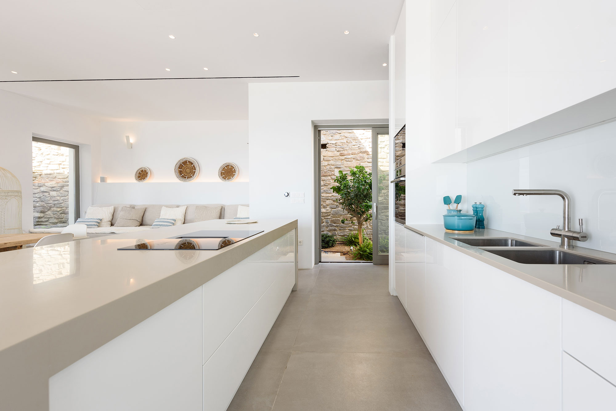 For culinary enthusiasts, the minimalist kitchen and outdoor dining area centered around an impressive cement table create the perfect setting for memorable gatherings. As day transitions to evening, the unique pétanque court atop the villa offers playful diversion under star-filled skies.