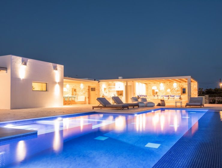 Villa Nikephoros is located in a high-end area of Mykonos Island, Aleomandra. The Villa is part of a gated complex with independent villas, having access to semi-private beach. Ornos and Agios Ioannis beaches are only a short ride away. This beautiful villa offers magnificent views, overlooking the Aegean Sea while facing the island of Delos and its colorful Mykonos sunset.