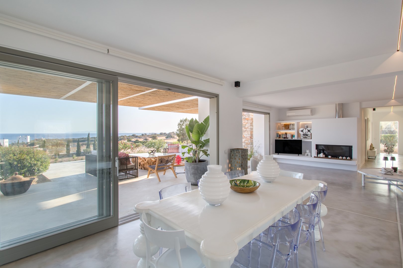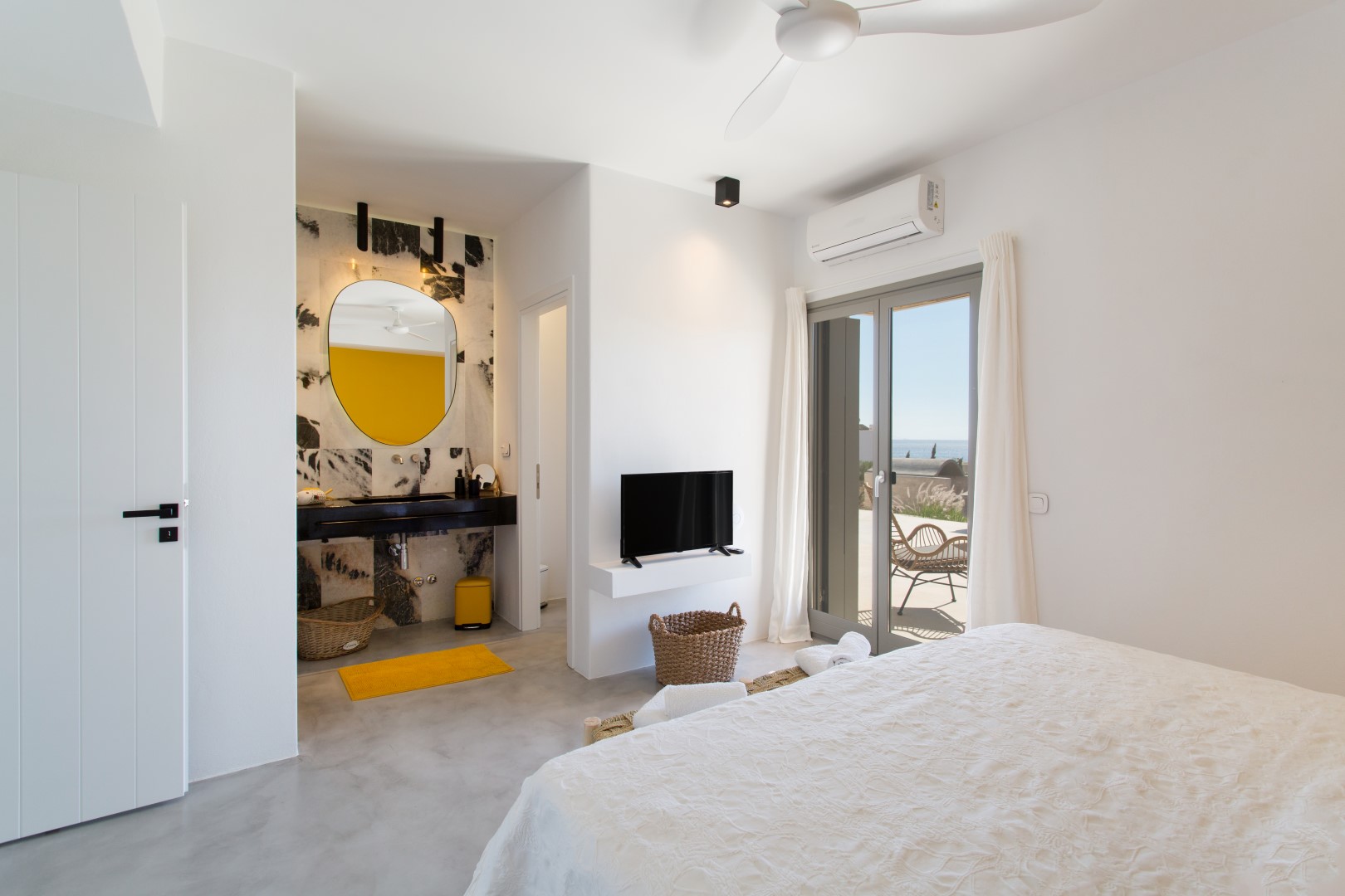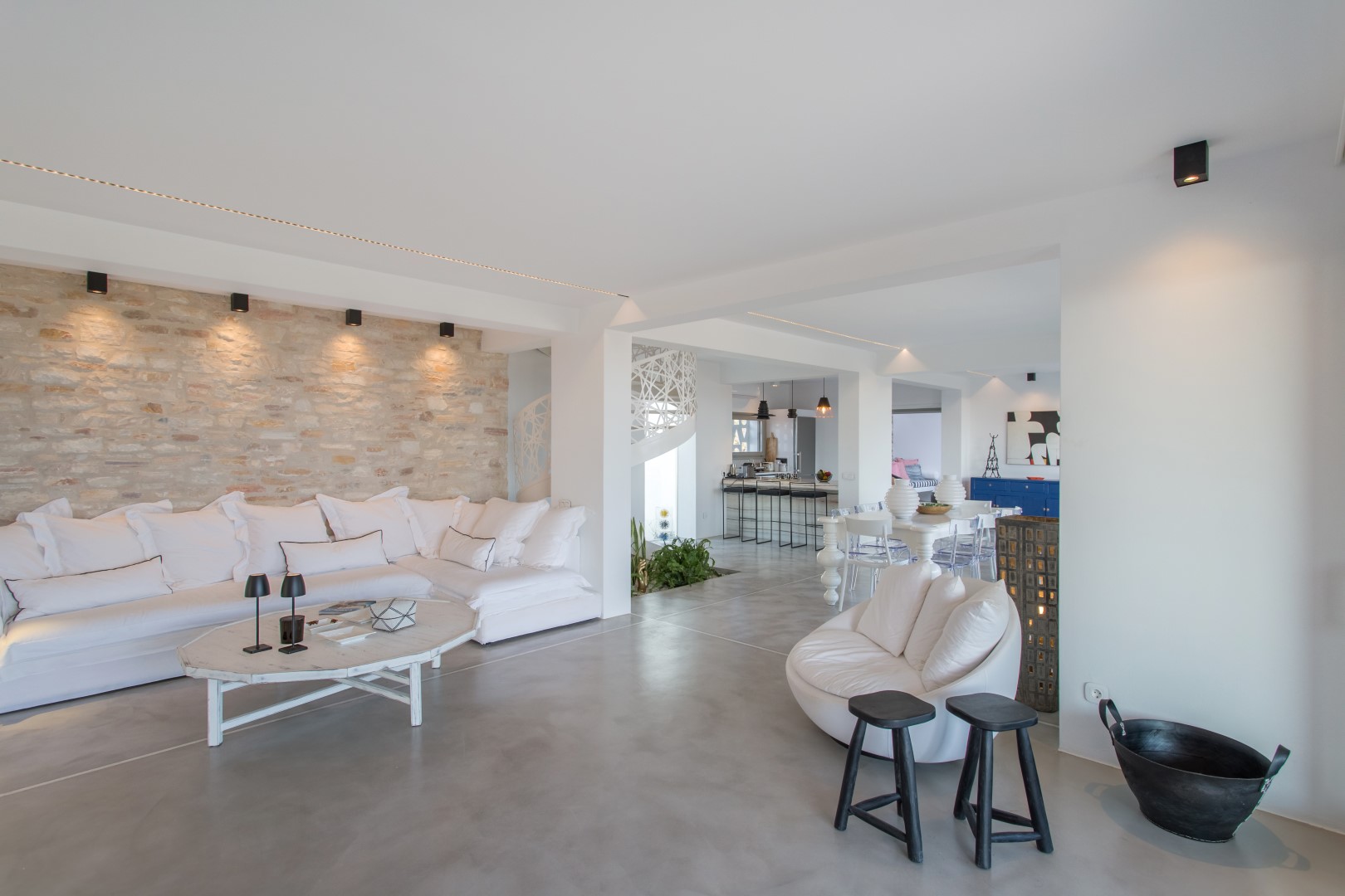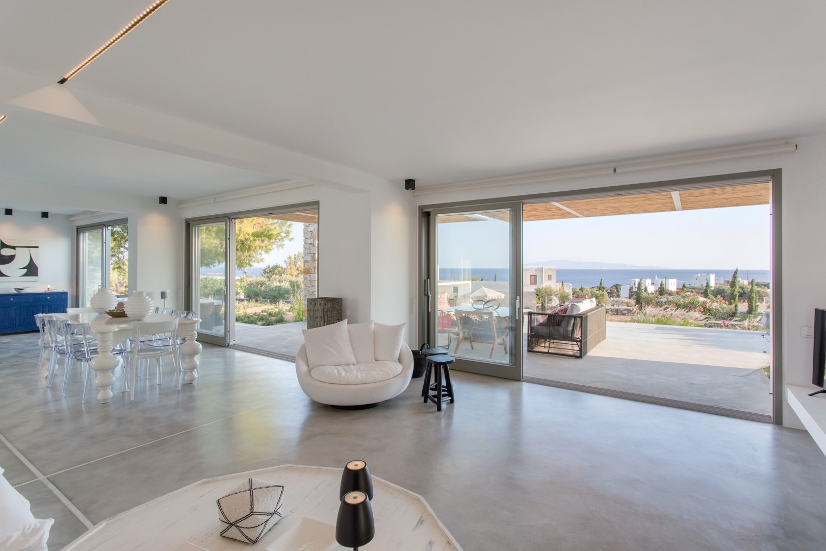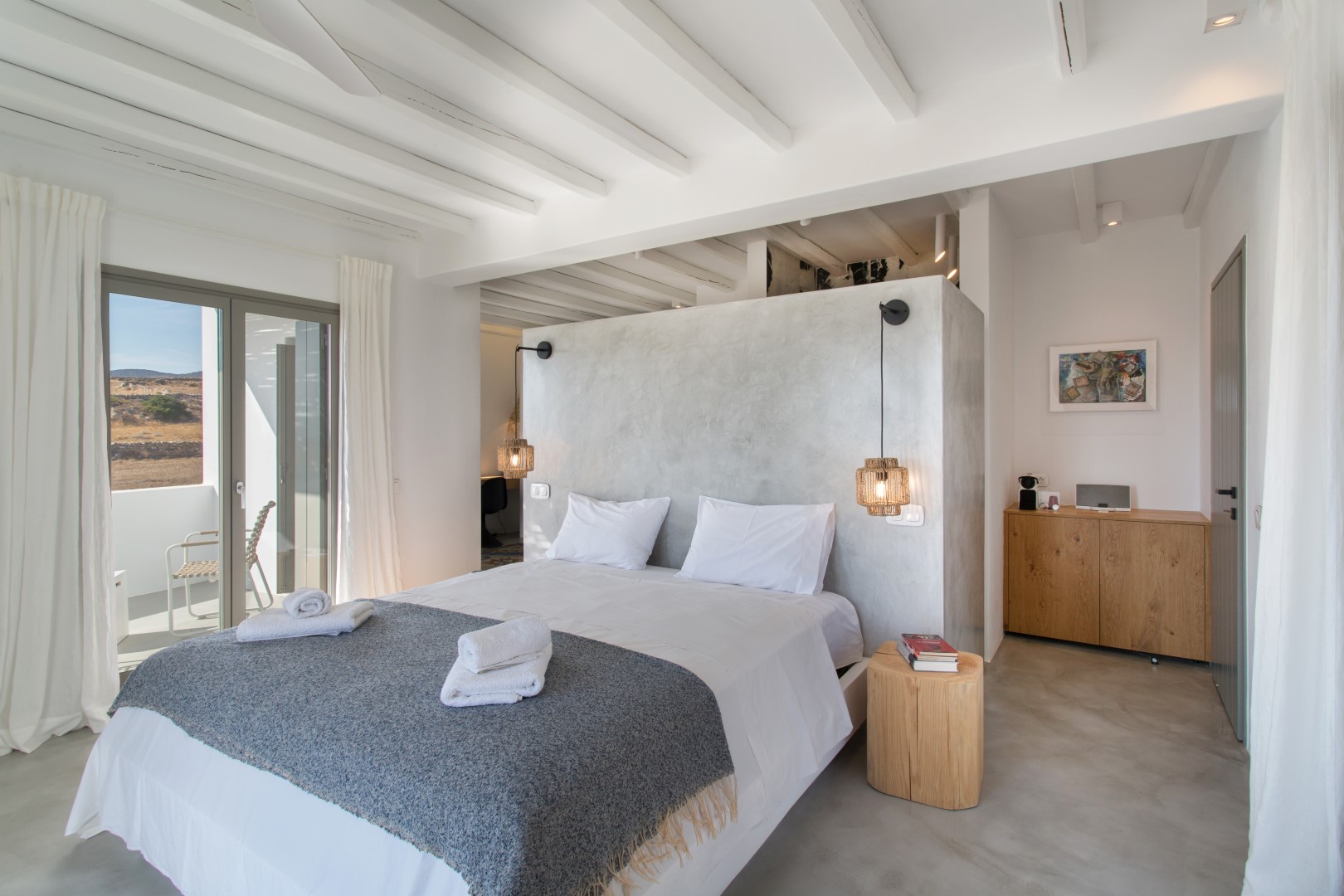 The property is enhanced with lush landscaping and comprehensive amenities including full air-conditioning, Wi-Fi, mosquito screens, safe box, fully-equipped kitchen with espresso and filter coffee machines, dishwasher, and pergola-shaded parking for multiple vehicles. Premium services include daily maid service, bi-weekly linen changes, concierge assistance, and complimentary toiletries—ensuring an unforgettable escape on the captivating island of Paros.