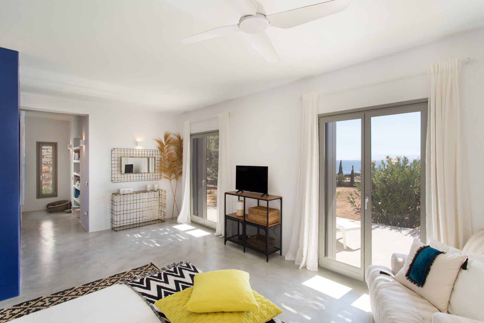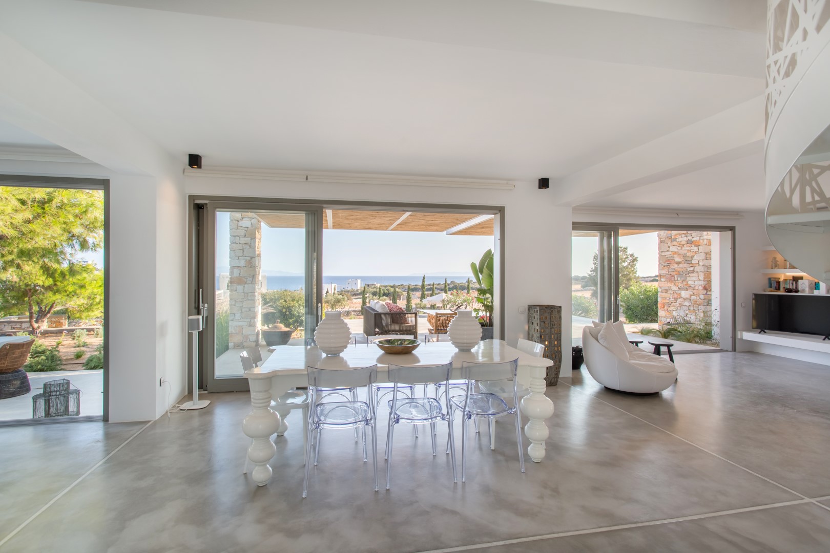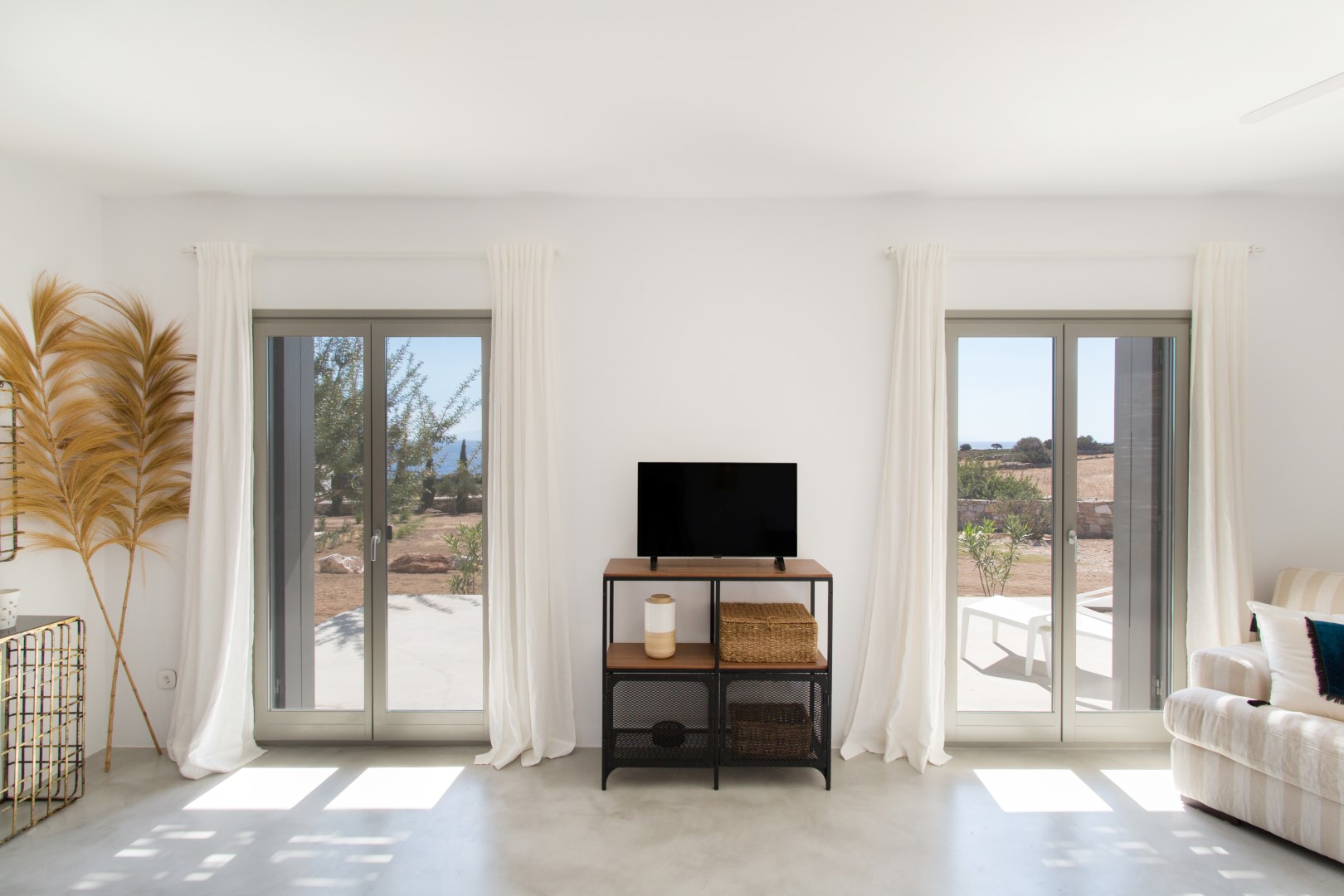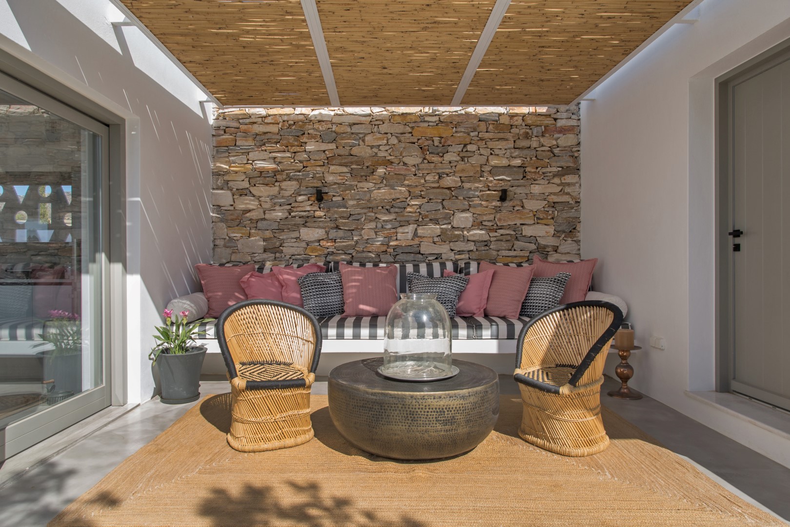The property is enhanced with lush landscaping and comprehensive amenities including full air-conditioning, Wi-Fi, mosquito screens, safe box, fully-equipped kitchen with espresso and filter coffee machines, dishwasher, and pergola-shaded parking for multiple vehicles. Premium services include daily maid service, bi-weekly linen changes, concierge assistance, and complimentary toiletries—ensuring an unforgettable escape on the captivating island of Paros.