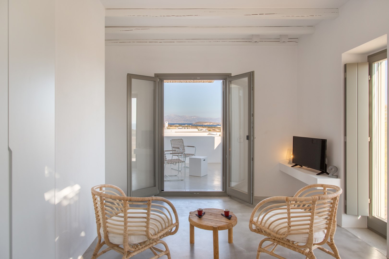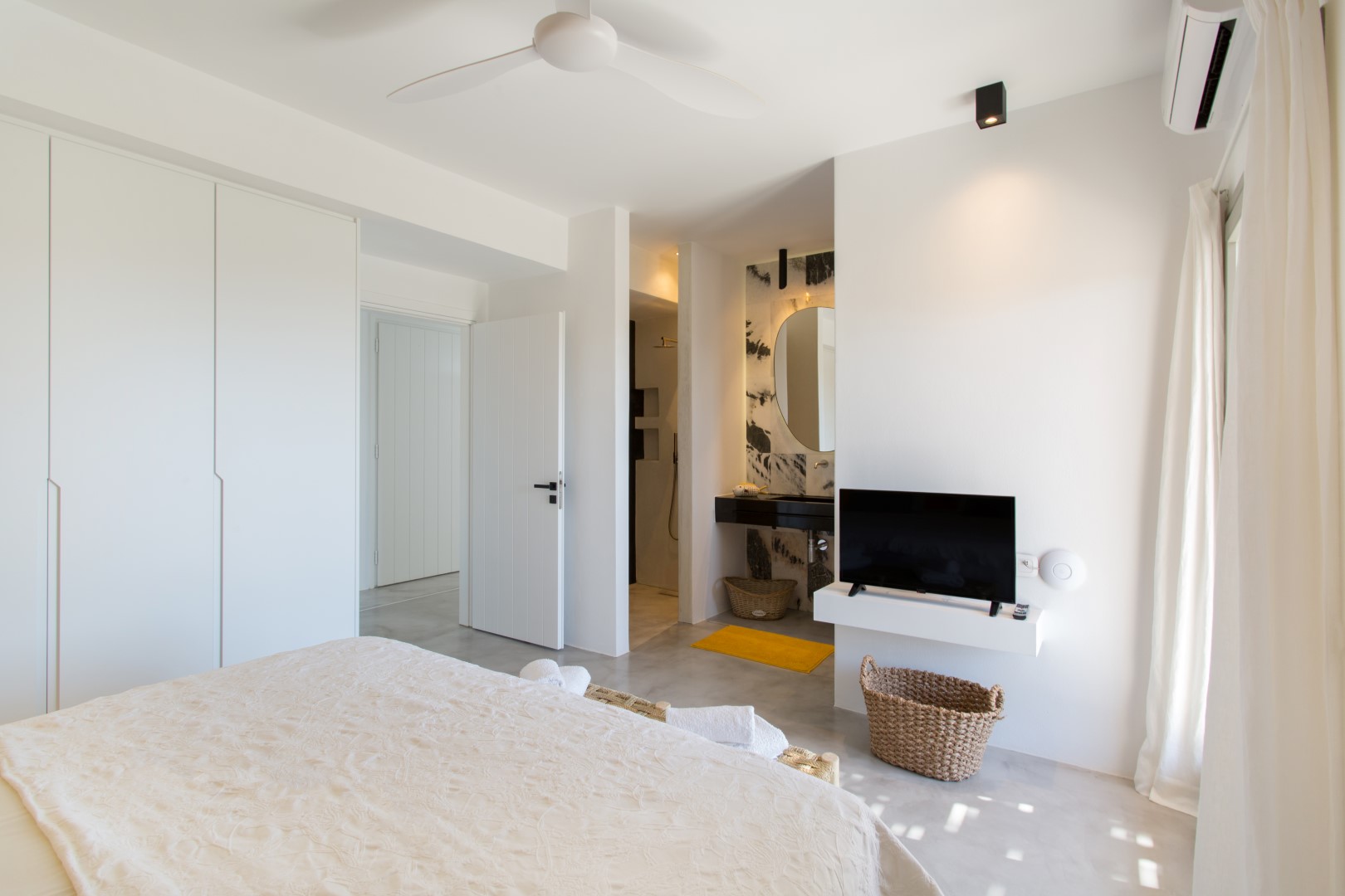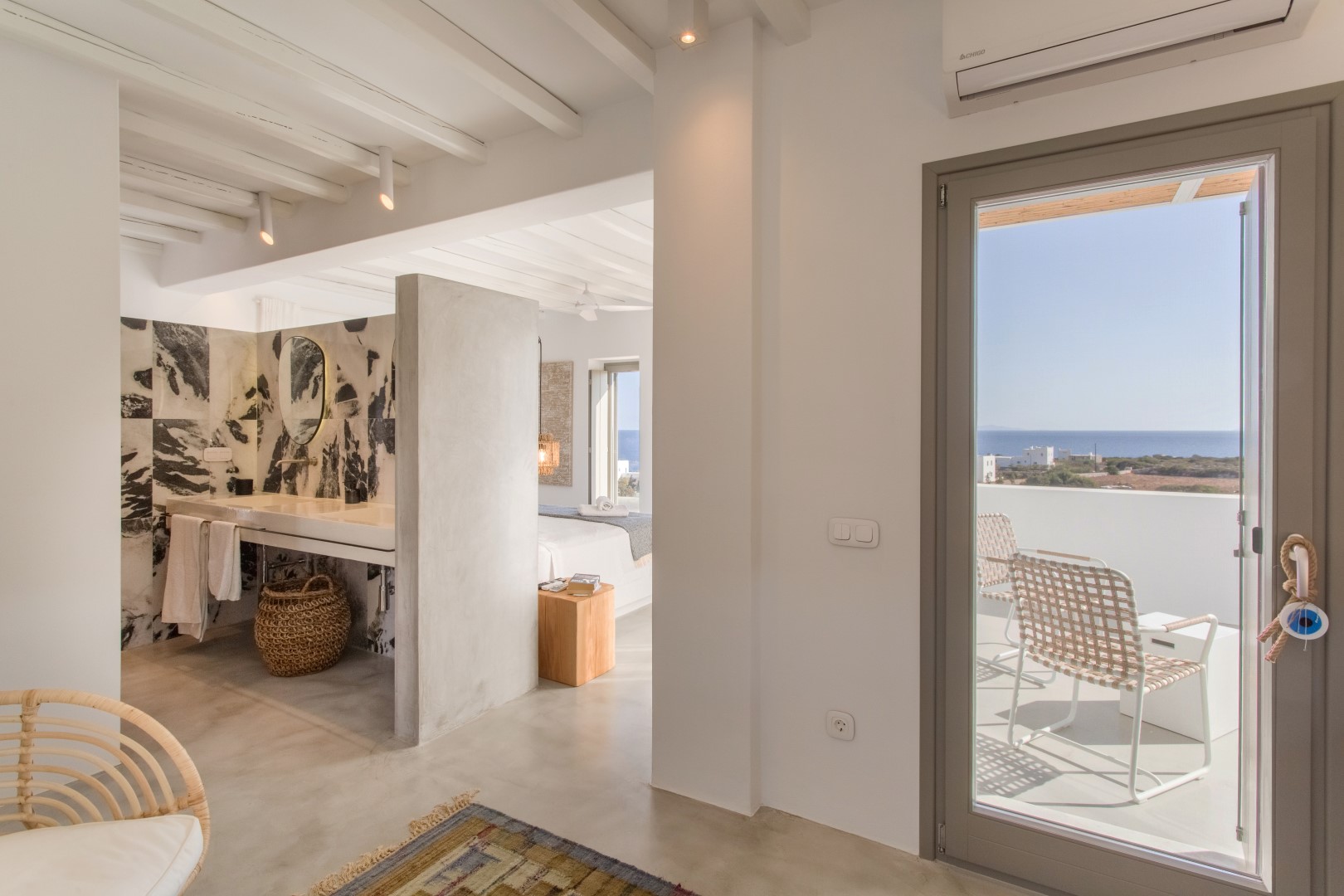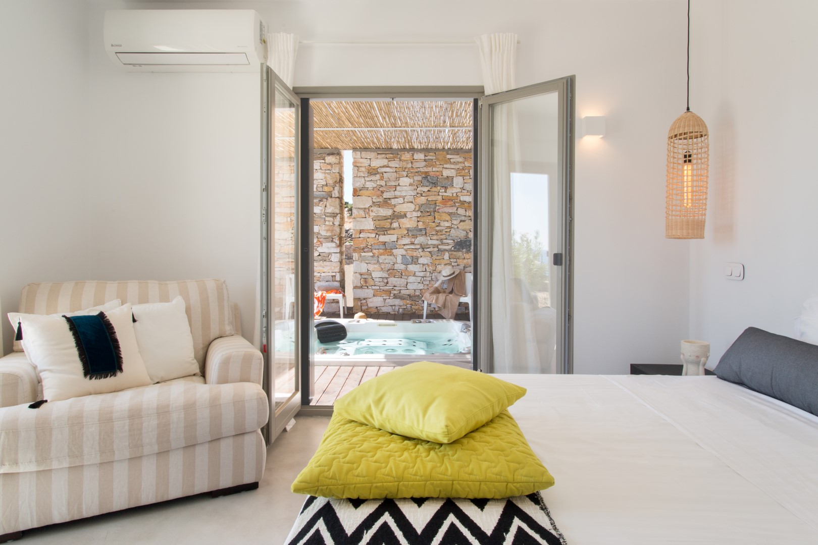 The property is enhanced with lush landscaping and comprehensive amenities including full air-conditioning, Wi-Fi, mosquito screens, safe box, fully-equipped kitchen with espresso and filter coffee machines, dishwasher, and pergola-shaded parking for multiple vehicles. Premium services include daily maid service, bi-weekly linen changes, concierge assistance, and complimentary toiletries—ensuring an unforgettable escape on the captivating island of Paros.