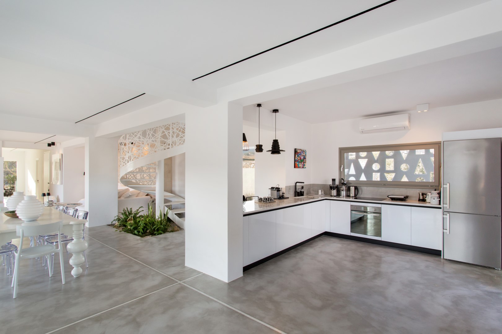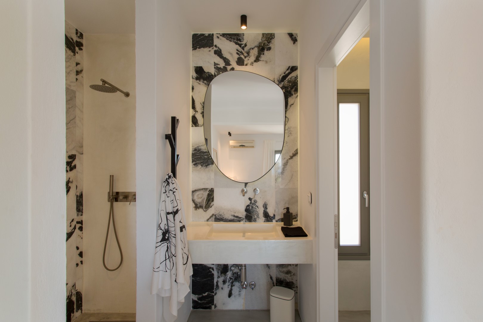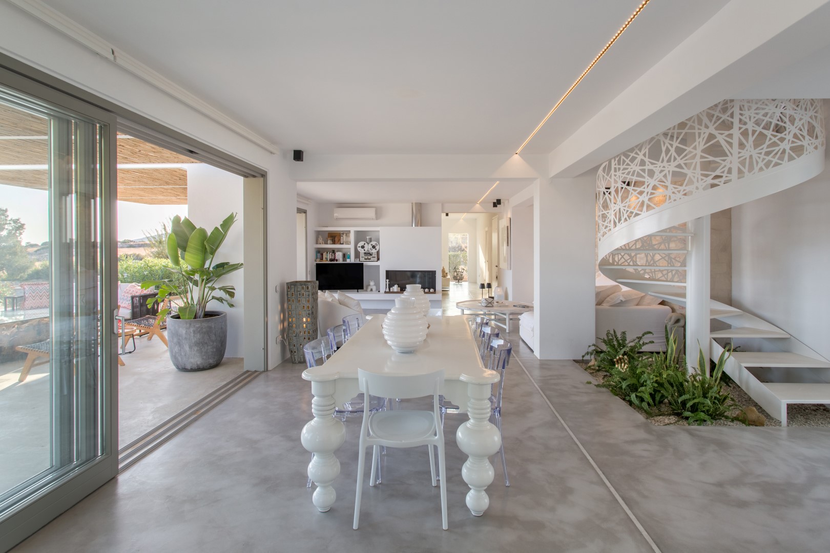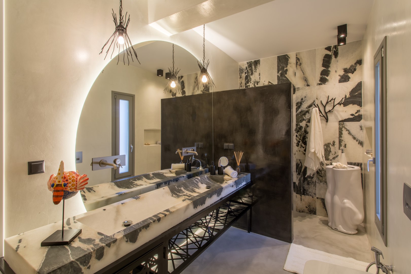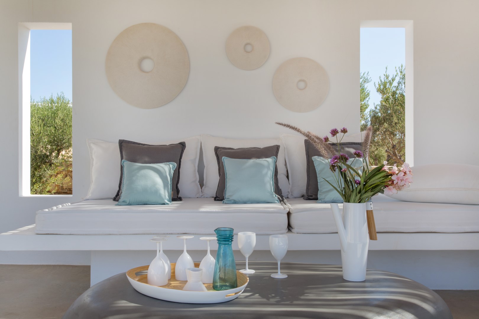 Outside, a private terrace showcases a glistening 12.5 x 4m swimming pool surrounded by chic loungers, creating the perfect setting for sun-soaked relaxation. Multiple pergola-shaded lounge areas and a built-in cement dining table under natural shade provide ideal spaces for alfresco entertaining. Adding a unique touch of cultural charm, the villa features a small chapel with architecture inspired by the island’s heritage.