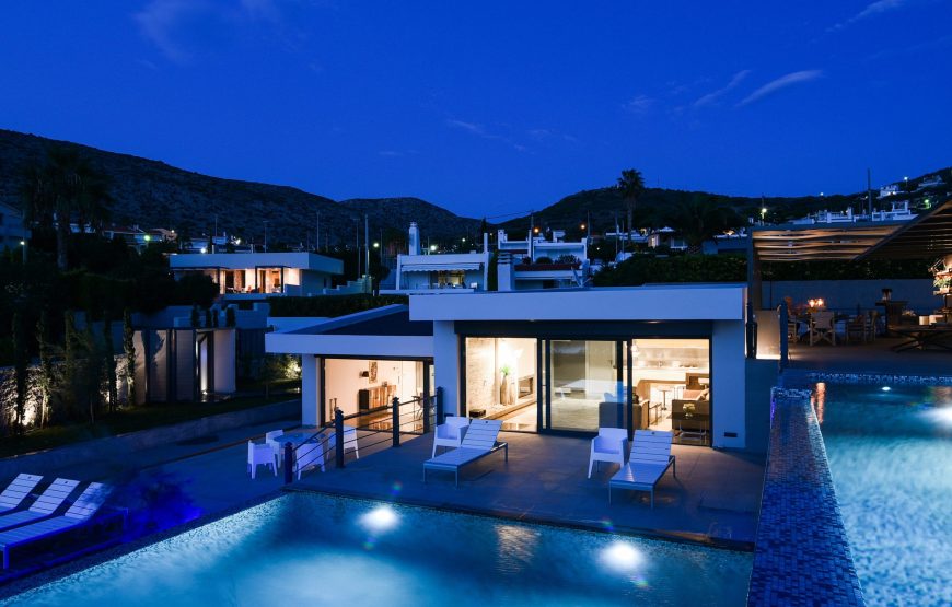 Discover Villa Selenia Gold, the crown jewel of the Athens Riviera, where luxury and nature embrace in perfect harmony. Set on a pristine beachfront in Sounio, our villa boasts an expansive, endless pool that appears to merge seamlessly with the deep blue Aegean Sea. The villa’s lavish interiors, sophisticated design, and breathtaking vistas create an ambiance of refined elegance and tranquility. Enjoy world class amenities and a memorable seaside escape in a sanctuary of opulence and charm.