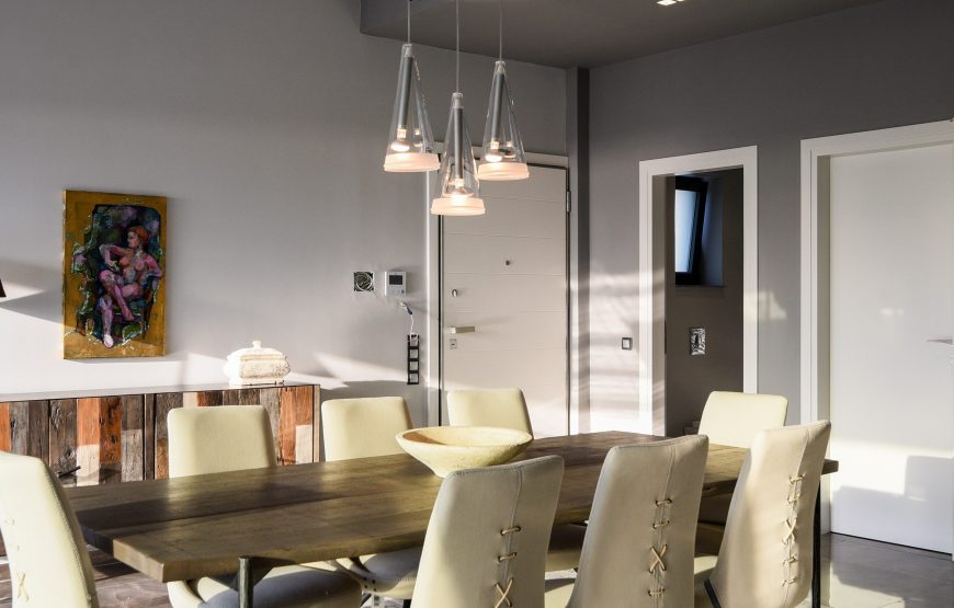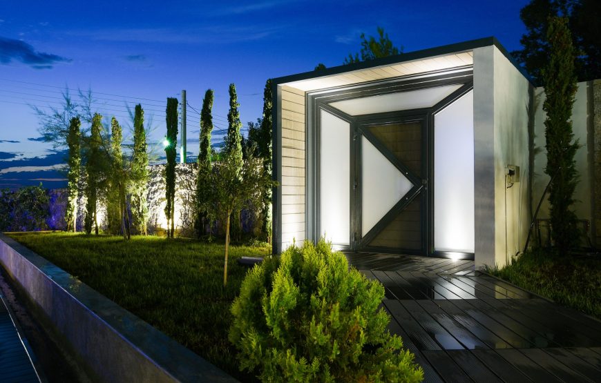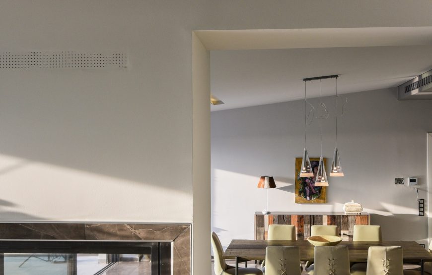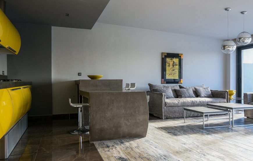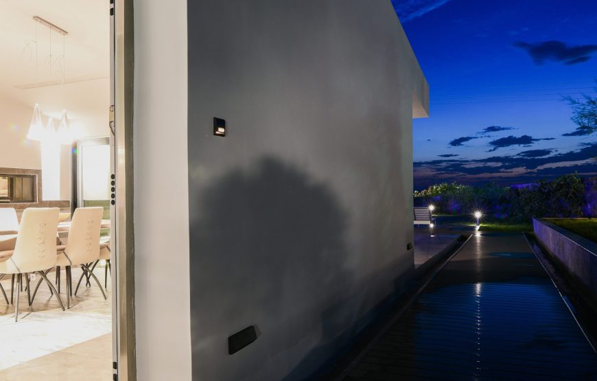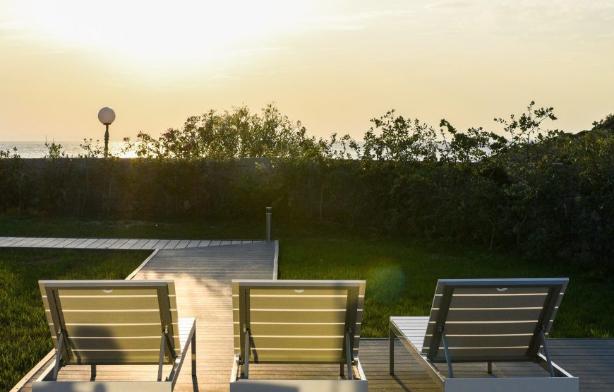 In the garden, there is a big outdoor lounge, the pool with sun loungers to enjoy the beautiful view of the sea and the magnificent sunset.