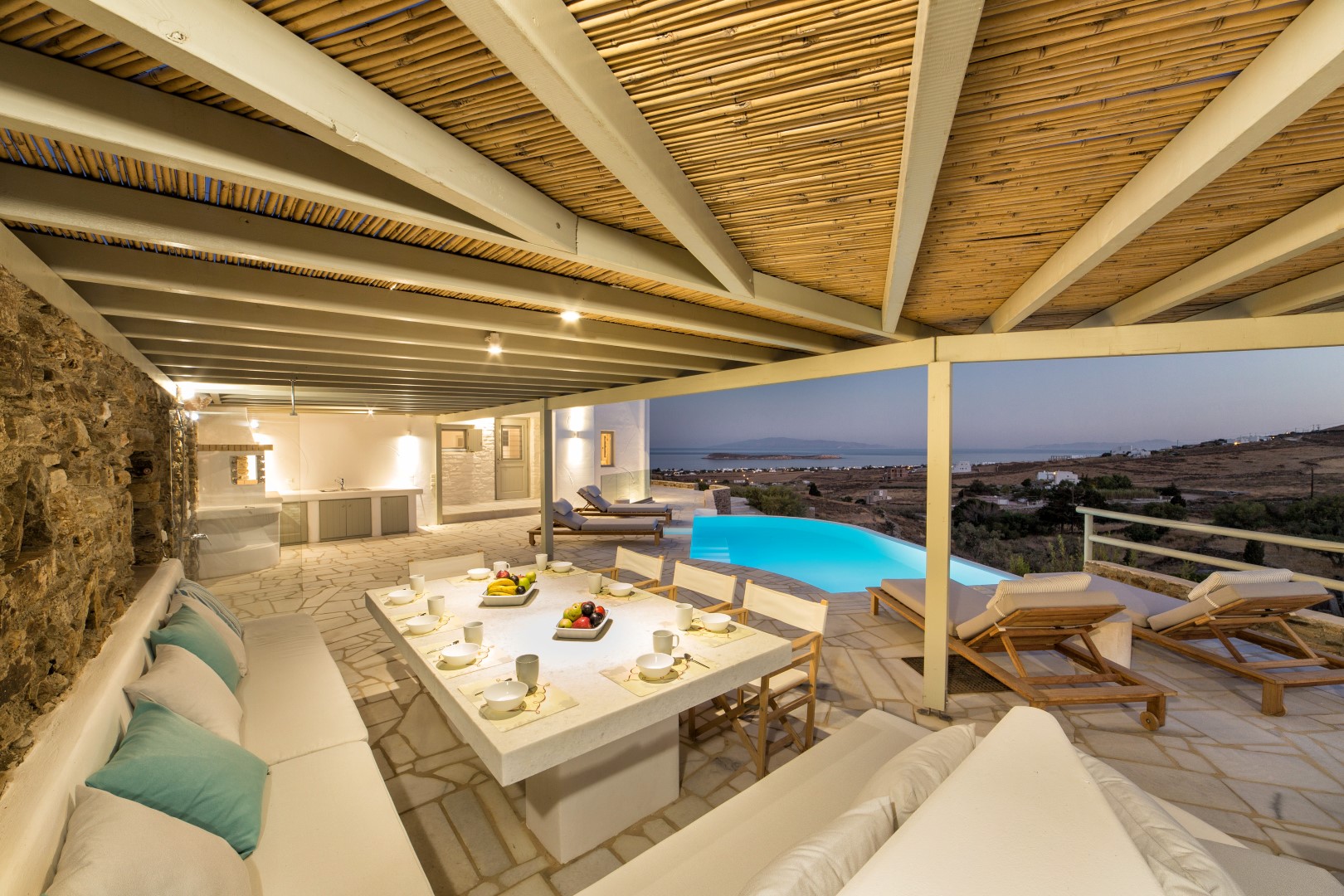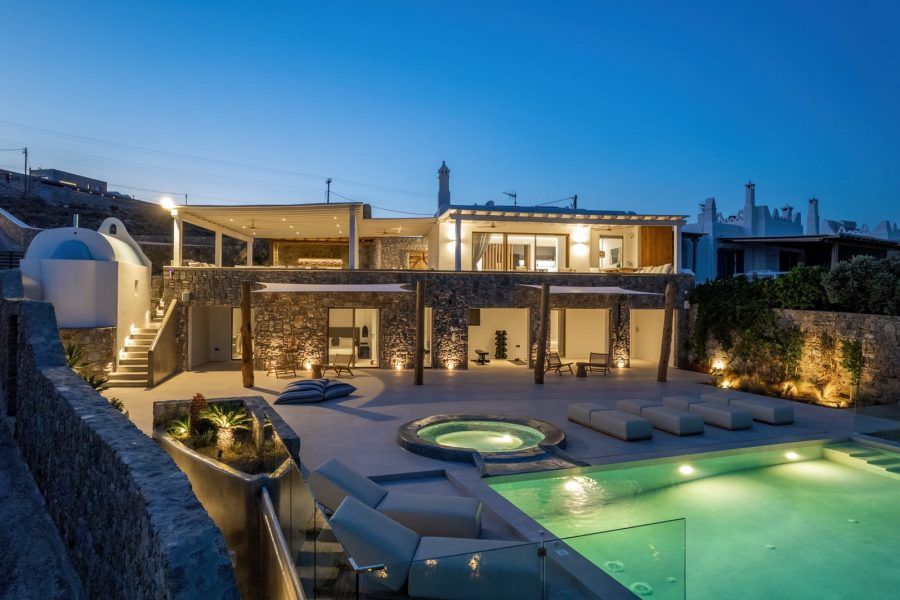 Set harmoniously into its elevated position, Villa Tzane offers discerning guests the perfect balance of privacy and accessibility, being just a seven-minute drive from the legendary Golden Beach. The villa’s showstopping infinity pool appears to merge with the sea beyond, creating a mesmerizing setting for both refreshing daytime swims and sunset contemplation.